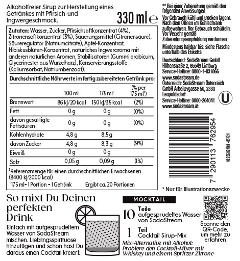 - • Cocktail Sirup-Mix Pfirsich & Ingwer (alkoholfrei) 330ml