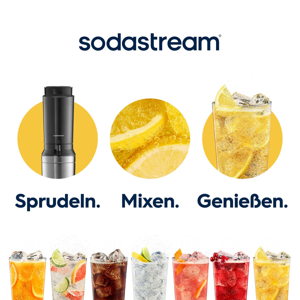Hinweis: Das Füllvolumen bis zur Fülllinie zum Aufsprudeln ist kleiner als das volle Flaschenvolumen. Weitere Informationen findest du in der Gebrauchsanleitung.