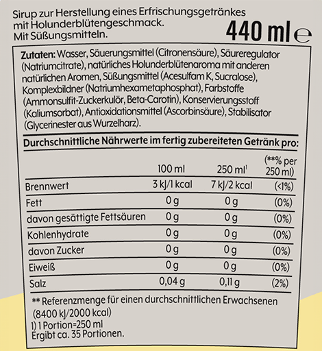 Inhalt: 440 ml Getränkesirup, ausreichend für 9 Liter Fertiggetränk