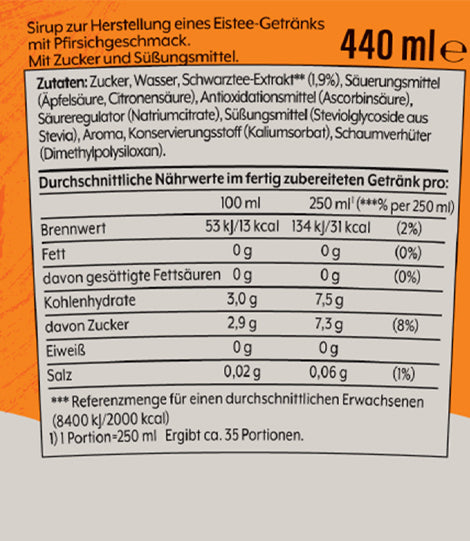 Eine Flasche ergibt ca. 9 L* Erfrischungsgetränk (*bei Zubereitung nach Vorschrift). Erst sprudeln, dann Sirup mischen!