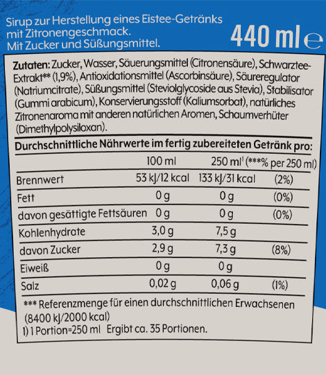 Eine Flasche ergibt ca. 9 L* Erfrischungsgetränk (*bei Zubereitung nach Vorschrift). Erst sprudeln, dann Sirup mischen!