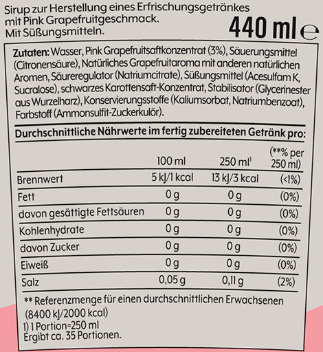 Pink Grapefruit ohne Zucker Sirup 440ml
