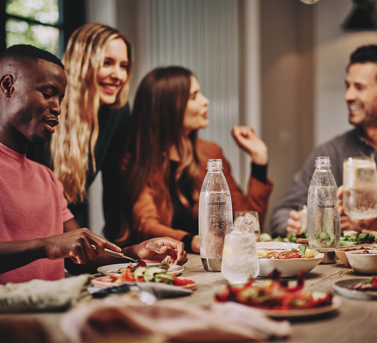 4. SodaStream 1 L Sprudlerflasche schräg halten und Sirup langsam eingießen. Getränk genießen!