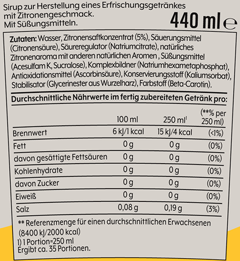 Inhalt: 440 ml Getränkesirup, ausreichend für 9 Liter Fertiggetränk
